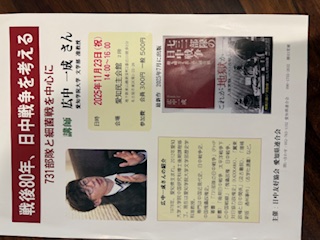 「戦後80年、日中戦争をかんがえるー731部隊と細菌戦を中心に」